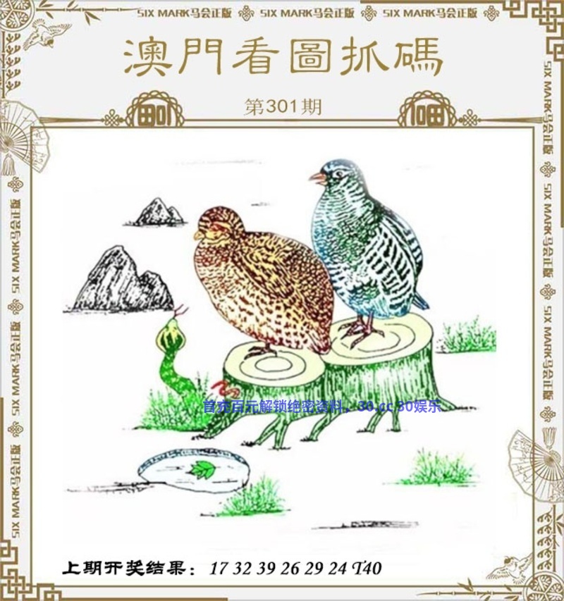 | 300期:开奖结果:17-32-39-26-29-24特:虎40准 | |||||||||||